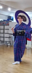 日本舞踊クラスに入ったきっかけは、玉三郎さんの「藤娘」を見て、私も習ってみたい、と思ったからです。お稽古に通い、最初は「自分ができるかな~」と悩みましたが、先生が踊りの基礎から指導してくださり、かなり成長したと思います。 勘翠理先生の特徴は、各生徒に対してのアプローチが良い意味で違います。皆のそれぞれのよいところを引き出すような指導です。曲の選択も、体の使い方も。 舞踊には振り付けだけでなく、気持ちを表すことも大切です。自分の課題曲にはどんな背景があって、どんな感情を出したら良いかなどを、先生が説明してくれますので、曲の理解も深まり、お稽古に参加しやすいし、自分成長にも大きな成果があるように思います。
