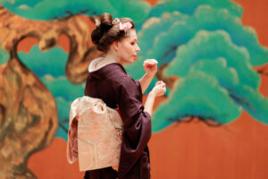 今回が初めての舞台出演でした。躍動感と繊細さの両方を持つ踊りで、それらを表現することは決して容易ではなく、大きな挑戦でした。けれども、お稽古の時も本番前も、先生と先輩方が温かく寄り添ってくださり、いつも力強い支えを感じておりました。いただいた励ましのお言葉や温かな支えに助けられて、最後まで踊りきることができたと思います。